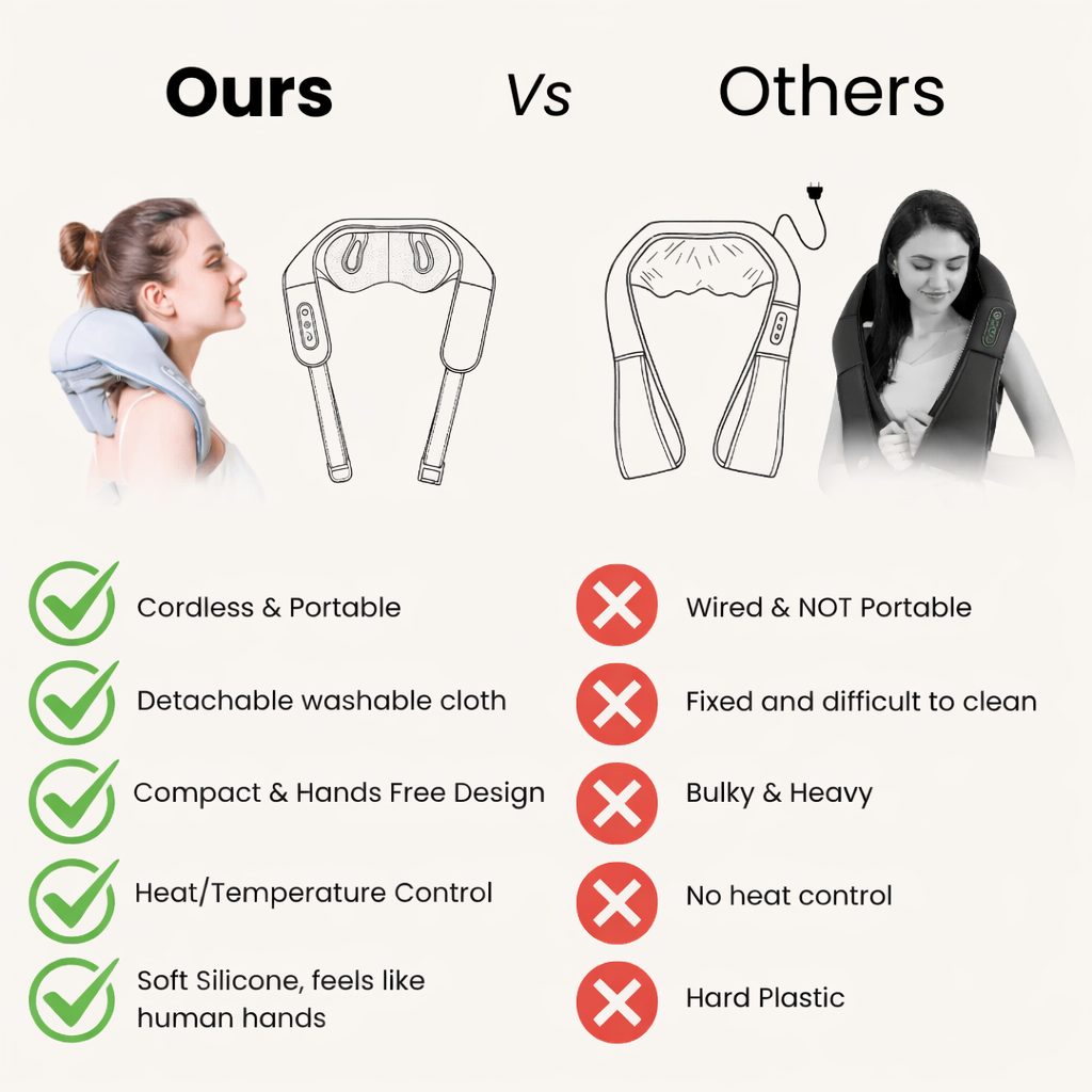 Experience targeted relaxation and workday pain relief with a heated neck, shoulder, and back massager designed specifically for office and desk work environments. This shiatsu deep tissue massager helps relieve neck pain, shoulder tension, and upper back discomfort caused by long hours of sitting, screen time, and daily work stress.